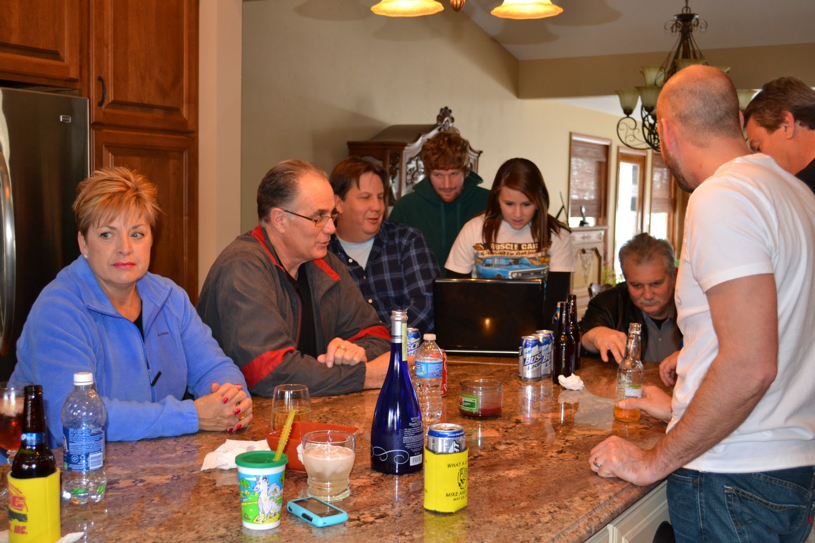 These 2 could be trouble if ever left alone. Dustin thinks my Uncle Jeff is just hilarious. And he loves his new "Plumber's Cola" huggie that Jeff gave him.
