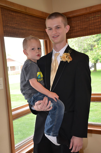 On Saturday RJ had his Senior Prom. I'm still a little surprised that he went at all. I had done Kate's hair that morning then Asher and I had a little nap before we went over to Mom & Dad's to see all the kids. I still can't believe that RJ, Jordyn and Kate are old enough to be going to Prom! Makes me feel a little ancient :(
